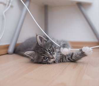 Než si své koťátko dokonce přinesete domů, zajistěte mu svůj domov. Koťata jsou mimořádně zvědavá a hned první den mohou hledat úkryty, díky nimž se budou cítit bezpečněji. Zkontrolujte všechny zákoutí, mezery za a pod nábytkem a spotřebiči. Blokujte přístup na místa, která by pro vaši kočku neměla zůstat omezená. Skrýt viditelné kabely, zejména visící, protože se mohou stát pro kotě skvělou hračkou.